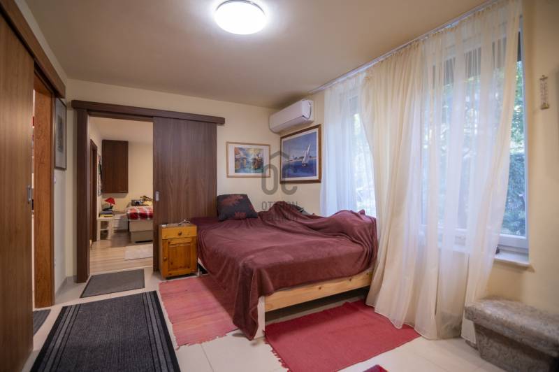 Ez az ingatlan egy kiváló lehetőség a Buda szívében, Szentimrevárosának csendes, mégis jól megközelíthető részén. A 68 m²-es földszinti lakás egyedi adottságokkal rendelkezik. A kertkapcsolatos elhelyezkedés révén nyáron kellemes kerti pihenést és külső kikapcsolódást kínál, így ideális azoknak, akik szeretik a kinti élet kényelmét. Az ingatlan három egymásból nyíló szobából áll, melyek sokrétű felhasználást tesznek lehetővé.A laká eredetileg 51m²-es lakótérrel és egy 17 m²-es iroda besorolású térrel lett összenyitva, így ideális választás lehet olyan vásárlóknak, akik egy gyerekkel költöznének vagy háziállat miatt fontos a kertkapcsolat. Fontos megemlíteni, hogy az ingatlan az Otthon Start program keretében is megvásárolható, mivel a lakás részére az már ingatlanként elérhető, így kedvező finanszírozási lehetőségeket nyithat meg a vásárlók számára.A környék egyik legnagyobb előnye a nyugalom. A ház egy csendes mellékutcában helyezkedik el, így a nappali nyugodt, háttérzene nélküli környezetet biztosít. Ugyanakkor a közlekedés szempontjából kiváló helyen van, hiszen a közelben megtalálhatóak a BKV busz- és villamosmegállók, így könnyen és gyorsan elérhető valamennyi budai vagy belvárosi pont. A parkolás is könnyű, mivel a ház előtt mindig van szabad parkolóhely, így az autós közlekedést is zökkenőmentessé teszi az ingatlan közvetlen környéke.Ez az ingatlan tökéletes választás családoknak, fiatal pároknak vagy akár befektetőknek, akik értékelik a nyugalmat, a jó közlekedést és a lehetőséget, hogy saját igényeik szerint alakítsák ki otthonukat. A csendes, zöld környezet, a praktikus elhelyezkedés, valamint a kiváló lehetőségek miatt ez az ingatlan valódi értéket képvisel a piac legjobb ajánlatai között.Ez az ingatlan a \"Hűség csomag\" megbízási portfólióhoz tartozik. Részletek az Otthon Centrum weboldalán.